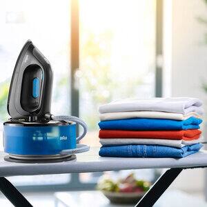 Díky jedinečné kombinaci technologie DoubleSteam a světově unikátní technologie 3D FreeGlide přináší špičkové výsledky žehlení za poloviční dobu. Její inovativní vertikální design navíc zabírá o 50 % méně místa. (* Ušetří 50 % času (v porovnání s napařovací žehličkou Braun TS 5,podle interního laboratorního testu) a 50 % prostoru (v porovnání s žehličkou s parním generátorem Braun IS 7144).)