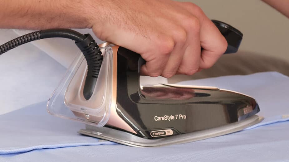 Die CareStyle 7 Pro ist das weltweit erste Dampfbügelstation, dessen Handhabung ergonomisch zertifiziert ist.* Sie unterstützt mit dem offenen Griff eine optimale Körperhaltung beim Bügeln und beugt schmerzende Arme vor. * Zertifiziert von ErgoCert (Ergonomics Certifying Institute, anerkannt von Accredia). Getestet gegenüber den meistverkauften Wettbewerbern, Januar 2020.
