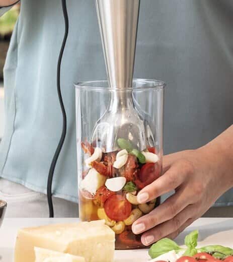 Bist du es leid, mehrere Geräte zu verwenden, um ein einziges Rezept zuzubereiten? Die MultiQuick-Serie von Braun mit EasyClick+-Aufsätzen erleichtert dir die Zubereitung von Speisen, denn sie bietet für nahezu jeden Bedarf in der Küche den passenden Aufsatz. Mixe gesunde Smoothies oder Suppen, hacke Nüsse oder Hartkäse, bereite cremigen und nahrhaften Hummus zu, stelle Gemüse- oder Fruchtpürees für die Babynahrung her oder mische sogar deine eigenen Gewürzmischungen. Und das ist noch nicht alles! Sieh dir alle Aufsätze an und entdecke, wie einfach die Zubereitung komplexer Rezepte sein kann.
