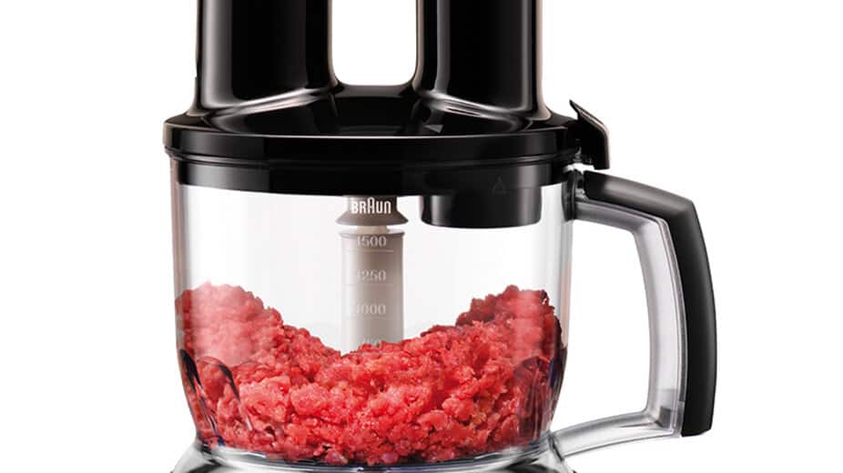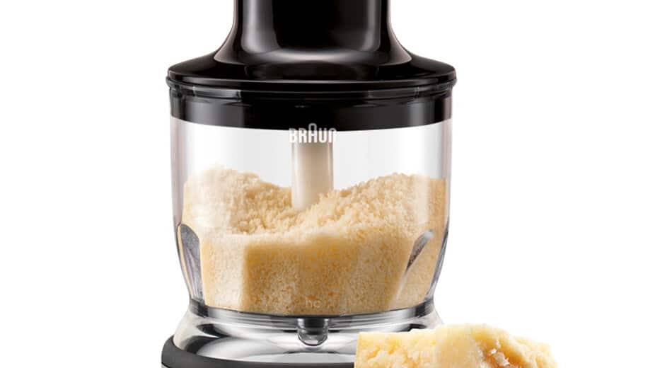 Zerkleinert Fleisch, Hartkäse, Nüsse, Kräuter und Karotten in Sekundenschnelle.