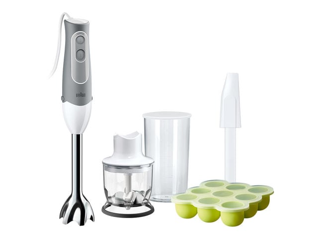 Save time and enjoy smooth results with PowerBell Plus. With its extra milling blade helps you to blend smooth baby purée. Thanks to the SplashControl technology, large quantities of baby food can be quickly blended directly in the pot – without splashing! To prepare and freeze small and big portions, the MultiQuick 5 baby comes in a clever set of beaker, spatula,chopper accessories as well as a freezer container by Mushy Mushy. The accessories are BPA free to protect your child's health.