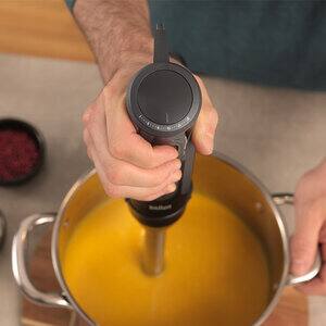 Mit dem MultiQuick 5 eröffnen sich viele neue Möglichkeiten für Sie in der Küche. Wechseln sie einfach per Klick das Zubehör. Bis zu 4x feinerer Ergebnisse* erzielen Sie mit der PowerBell VPlus Klinge. Eine zusätzliche Mahlklinge und 6 Innenrippen erzeugen mehr Kontakt mit den Lebensmitteln zudem schafft die Klinge mehr Schnitte pro Rotation. Der MultiQuick 5 ist einfach in der Anwendung: Die 21 Geschwindigkeiten, die nur mit einer Hand eingestellt werden könne sowie der 1000 Watt starke Motor sorgen für schnelles und effizientes Mixen.