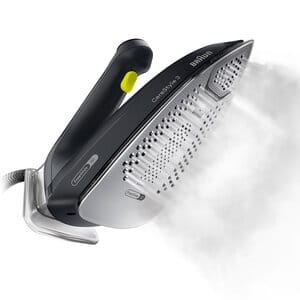 Erzeugt mehr als doppelt so viel Dampf wie ein herkömmliches Dampfbügeleisen*,wodurch sich die Bügelzeit auf die Hälfte reduziert. Die Dampfleistung ist 100 % höher,sodass Falten beim ersten Mal geglättet werden und man kein zweites Mal darüber gehen muss. * Interner Labortest,im Vergleich zu Braun FreeStyle 3 Dampfbügeleisen.