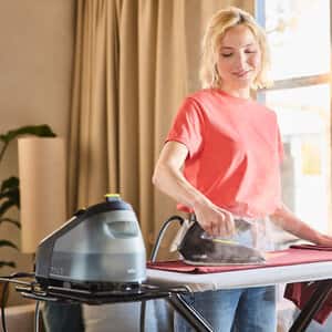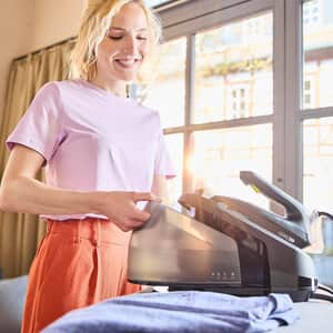 Spare Platz und Zeit, ohne Kompromisse bei den Bügelergebnissen einzugehen. Die CareStyle 3 Dampfbügelstation wurde für eine besonders schnelle Leistung entwickelt und kombiniert mehrere innovative