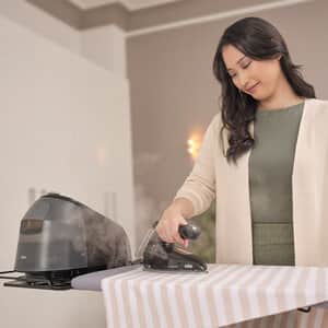 Beseitigt in Sekundeschnelle bis zu 99,99 % der Viren und Bakterien aus Kleidung und Heimtextilien. Einfach abdampfen und schon sind die Viren und Bakterien beseitigt.* *Unabhängiger Labortest auf Baumwollgewebe in der 2 Punkte Einstellung. Vor- und rückwärts bügeln (5 cm/Sek.).