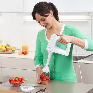 Alle Zubehörteile werden ganz praktisch vorne am Handmixer angebracht,damit Sie das Gerät immer in derselben gewohnten Position nutzen können – ob beim Mixen,Pürieren oder Abstellen. Das Gerät steht mit jedem Aufsatz immer stabil:So bleibt Ihre Arbeitsplatte sauber und Sie können ohne grosse Unterbrechungen zum nächsten Arbeitsschritt übergehen.