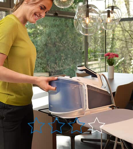 The most important factors that influence the ergonomics of ironing are the posture, the perceived effort, and the frequency of movements and the ease of use. The iron of the Braun CareStyle series 9 to 3 is meticulously designed address each ergonomic factor and to deliver a comfortable ironing experience – even for the longest ironing sessions.