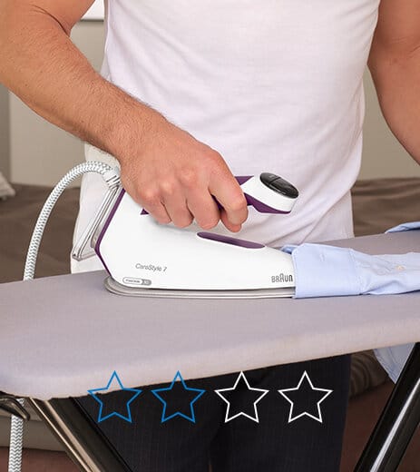 Frequent unnatural movements can stress your wrist and make the ironing experience difficult and cumbersome. The CareStyle series 9 to 3 have been specifically designed for maximum comfort and an effortless ironing experience. Users confirmed our design decisions and rated the new Braun CareStyle 7 as requiring low perceived effort³ on the Borg scale – a scale used to measure perceived exertions. Also, the subjective values from the glove experimental application were aligned with the Borg perceived exertions result.