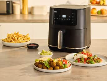 Mit der MultiFry 5 Heißluftfritteuse kannst du eine Vielzahl von Gerichten so einfach wie nie zuvor zubereiten. Dank der RealAir Technologie zirkuliert heiße Luft gleichmäßig um deine Speisen und sorgt so für knusprige Ergebnisse. Du wirst begeistert sein von der Zeit, die sparst, da keine Vorheizzeit erforderlich und alles 50 % schneller fertig ist.*