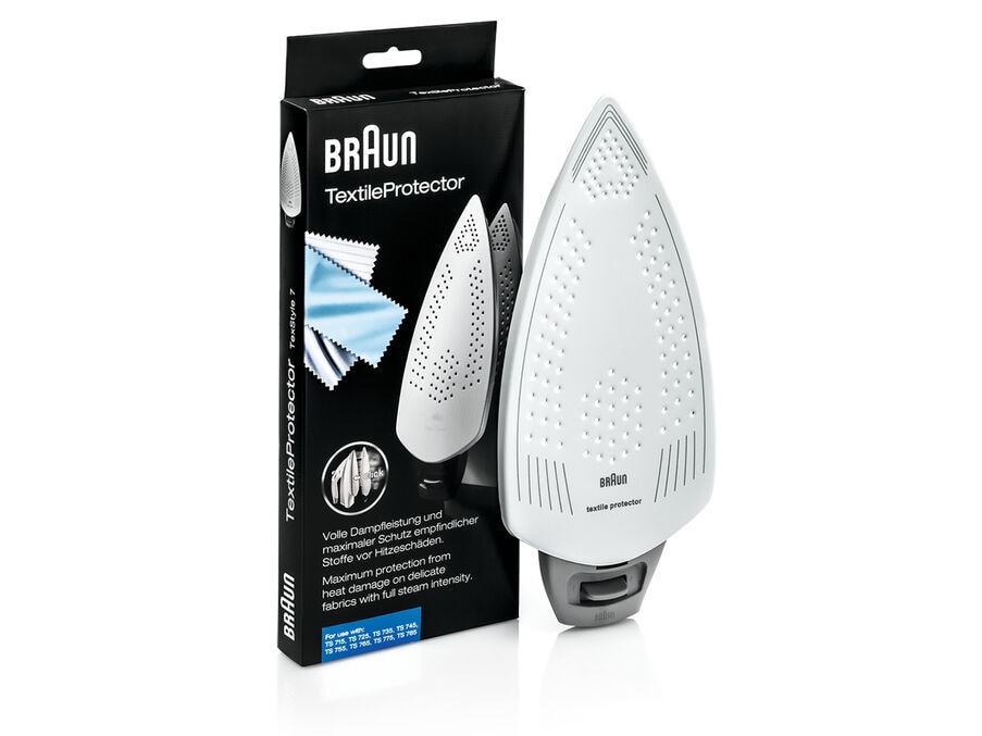 Με το μοναδικό Textile protector της Braun, ακόμα και τα ευαίσθητα υφάσματα μπορούν να σιδερωθούν σε ρυθμίσεις θερμοκρασίας με όλες τις λειτουργίες ατμού που προσφέρει το σίδερό σας. Ταυτόχρονα, προστατεύει τα ευαίσθητα υφάσματα από φθορά λόγω θερμότητας και από γυαλάδες. Έτσι όλα τα υφάσματα μπορούν να σιδερωθούν χωρίς πανί επάνω τους. Το Textile protector απλά κουμπώνει επάνω στην πλάκα και κατεβάζει αμέσως τη θερμοκρασία της σε ασφαλές αλλά και αποδοτικό επίπεδο, για τέλεια αποτελέσματα σε κάθε είδους υφάσματα.