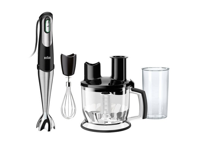 Universally convenient: either use it together with the hand blender to make a fruit smoothie or mix your favourite drink – or use the whisk attachment to beat eggs, eggs whites, cream or make creamy sauces.