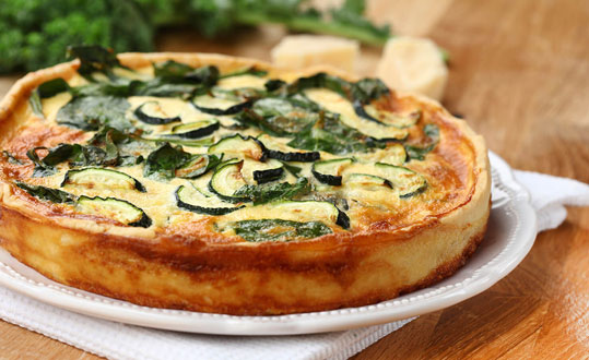 Whisk the milk, cream, egg yolks and nutmeg in a bowl with half of the grated Parmesan by using the MQ 10 whisk accessory and mix well. Thanks to the EasyClick system + all accessories can be exchanged in one simple click. Add the kale and onion mixture and season with a little salt and pepper. Pour into the prepared pastry case and top with sliced courgettes and the rest of the grated Parmesan cheese. Bake in the oven for 20 minutes.