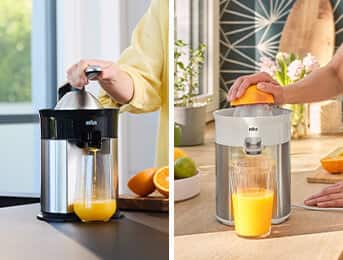 All of Braun's Citrus juicers automatically switch on when you press fruit down onto the cone. No additional buttons needed. When you're finished pressing, simply lift the fruit or the lever¹ and the motor stops. It’s as easy as that!