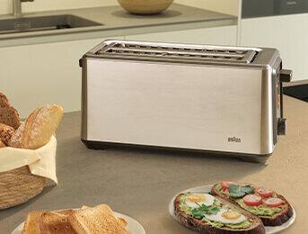 Enjoy maximum versatility with two extra long-slots¹ for bread, bread rolls and more. Toast up to 4 slices or 2 half baguettes at the same time.