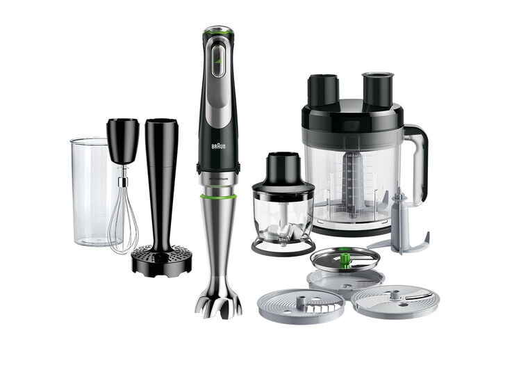 The MultiQuick 9 is Braun’s best performing and most powerful hand blender yet. It now features Active PowerDrive Technology, with its high-performance 700-watt motor that results in up to 40% faster performance*. The new MultiQuick 9 is equipped with a wide range of new, cutting edge features like the imode Technology for even more customization while blending and using different attachments with the EasyClick system. The new dicer attachment is 10 times faster than dicing by hand and with an 8 cup food processor capacity, you can also slice, shred, chop and knead dough. The new MQ9 offers total control and ultimate versatility in the kitchen. *vs Braun MQ500 on pesto