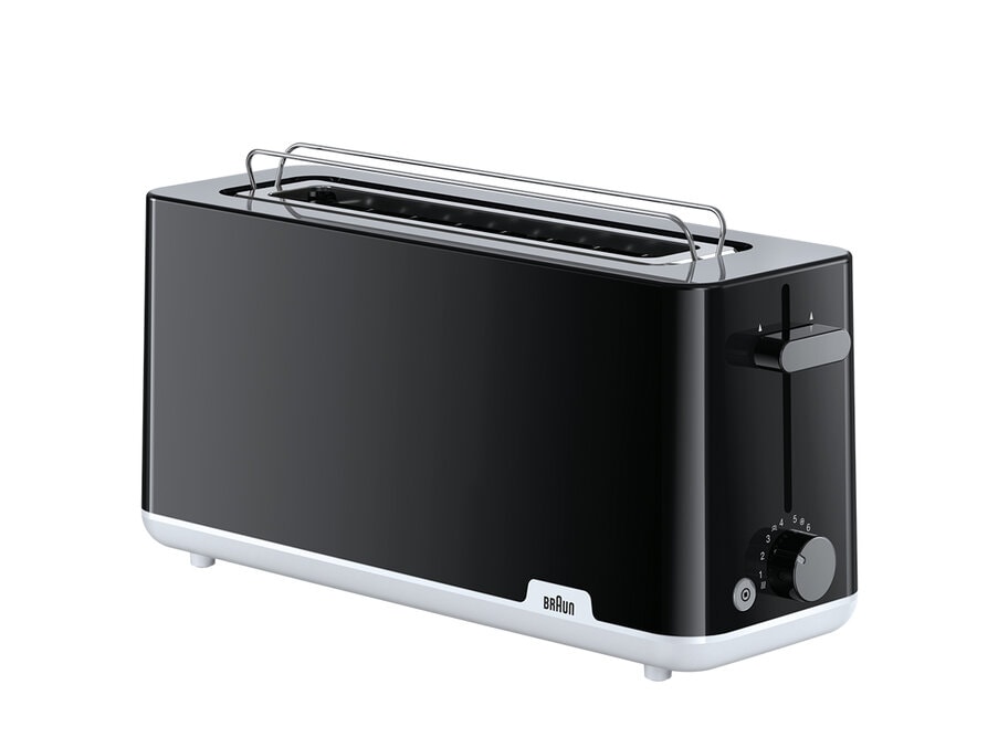 The Breakfast 1 toaster is just what you need to make your favourite crispy toast. The easy-to-use Breakfast 1 series long-slot toaster gives you the flexibility to choose your preferred level of browning. The 25 cm extra long slot fits a wide range of bread sizes, ensuring that even the largest slices can be perfectly toasted to your liking. The removable crumb tray makes it easy to clean as well.