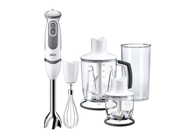 Blends soups, drinks, dips. Or use as chopper for larger quantities. Includes ice crushing knife and chopping knife.
