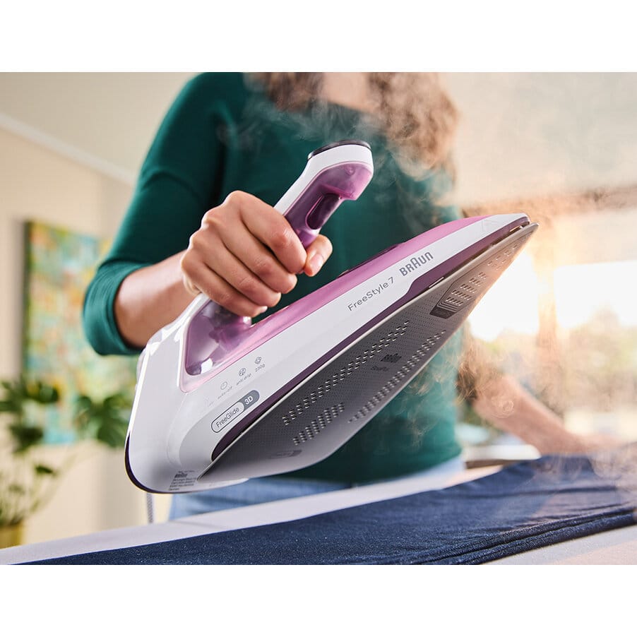 Maximise your ironing performance and enhance your comfort with the new FreeStyle 7. Braun’s innovative PowerSmart Technology is powerful like a steam station* to make quick work of wrinkles thanks to a potent steam output of 60 g/min and a forceful steam shot of 250 g/min.