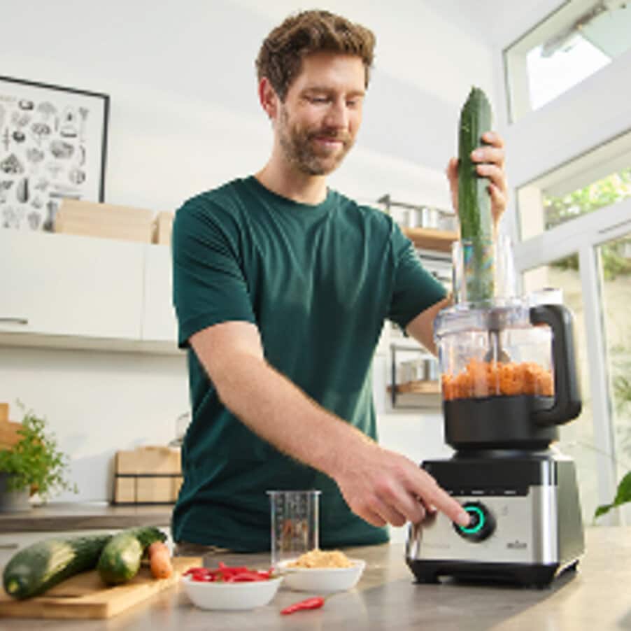 Braun’s PowerBlend 7 Kitchen system is your all-in-one powerhouse for healthy eating. Enjoy the unbeatable versatility of 5-in-1 functions in this space-saving combination of jug blender, food processor, and Smoothie2Go maker. From silky smoothies to chunky salsa – the choice is yours. iTextureControl lets you customise your perfect texture every time.