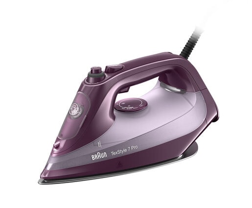 The TexStyle 7 Pro is Braun’s best performing steam iron. The TexStyle 7 Pro series features the world’s first FreeGlide 3D Technology soleplate. Glide backwards over any obstacles such as buttons, pockets and zippers – without getting stuck.The unique EloxalPlus coating on the soleplate provides extraordinary glideability to accelerate the ironing process.The TexStyle 7 Pro has been upgraded with a soft grip handle for more comfort. Now available in new colours and with increased power up to 3100 watts.