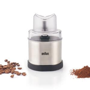 En acier inoxydable pour moudre le café et toutes sortes d’épices ou d’ingrédients secs en quelques secondes.