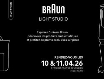 De la démonstration de notre petit électroménager à l'immersion dans la technologie lumière pulsée intelligente (IPL), profitez d'un accompagnement avec nos experts en suivant notre parcours immersif. Venez vivre l'événement Braun les 10 avril (14h-19h) et 11 avril (10h-19h) 8 rue des Francs Bourgeois, 75003 Paris.