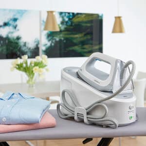 Le jet de vapeur puissant de la centrale vapeur permet de repasser facilement et efficacement tous vos vêtements,sans faux plis.