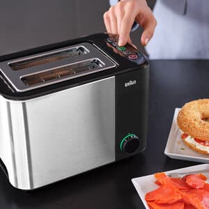 Découvrez le grille-pain ID Collection de Braun. Grillez parfaitement grâce aux 13 réglages pour des baguettes, des bagels et des petits pains du légèrement doré au brun foncé croustillant. Il est doté d'un accessoire pour réchauffer les pains plus grands et d'une fonction spécifique pour les bagels.