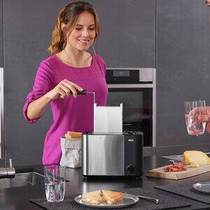 Grâce à la cage à sandwich anti-fuite spéciale,exclusive à Braun,vous pouvez facilement griller un délicieux sandwich chaud sans risque de faire fondre les ingrédients dans le corps du grille-pain.