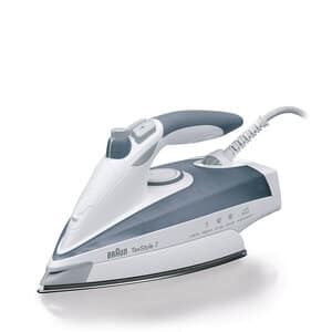 With Braun’s unique Textile protector,even delicate fabrics can be ironed at temperature settings with all the steam functions your iron offers. At the same time,it protects delicate fabrics from heat damage and shiny patches so that most fabrics can be ironed without an intermediate cloth. The Textile protector simply clicks onto the soleplate immediately lowering its temperature to a safe yet effective level,for optimal results on all kind of fabrics.