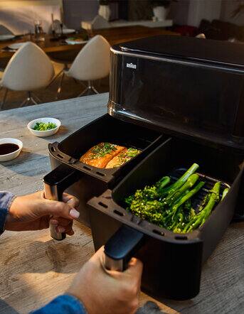 Discover the endless possibilities of air fryer cooking – from crispy fries and tender chicken wings to perfectly roasted vegetables and even homemade pastries. The MultiFry 5 transforms your favourite recipes into healthier versions without compromising on taste. Whether you're craving comfort food or exploring new culinary adventures, the MultiFry 5 opens up a world of versatile cooking options while saving time and energy in the kitchen.