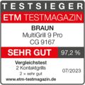 Braun's MultiGrill 9 Pro CG 9167 was named as test winner by the ETM test magazine.