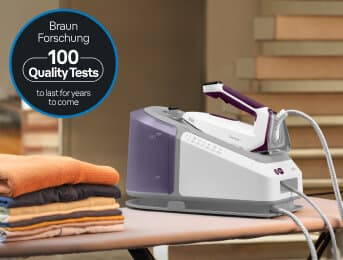 Per garantire gli alti standard di qualità, ogni prodotto è accuratamente testato, dalla fase di sviluppo alla fine della produzione, con oltre 100 test. I prodotti Braun sono sottoposti a severi test che vanno a verificare tutte le aree di performance del prodotto. Da test di performance funzionali riguardanti l’uscita del vapore, lo scorrimento della piastra, la sua resistenza ai graffi, alle prove di affidabilità e di sicurezza durante l’utilizzo e fino alle prove di caduta accidentale.