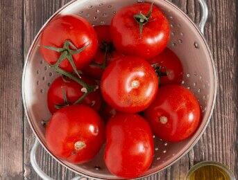Aggiungi ai pomodori l'olio d'oliva, l'origano e un cucchiaino di sale. Mescola bene il tutto e cuoci in forno a 225°C per circa 30 minuti, finché i pomodori non risultano morbidi.