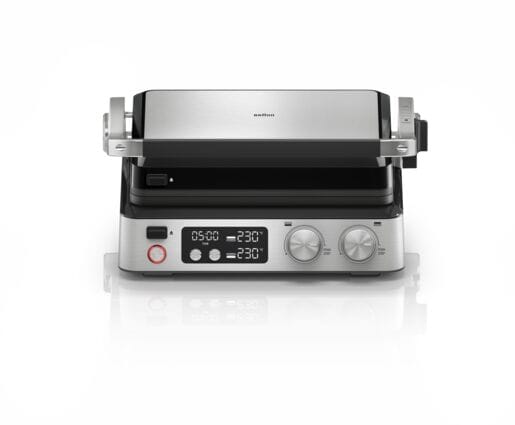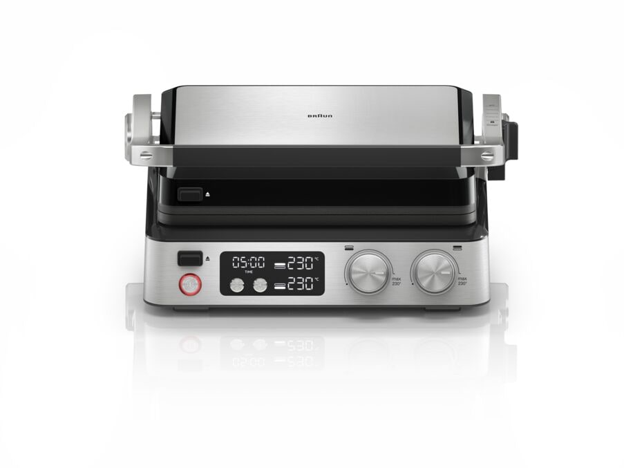 電源はボタン1つ押すだけ、あとは温度をダイヤルで回すだけの簡単操作。 ヒーター内蔵型プレートで立ち上がりも早く、1400Wのハイパワーで素早く均一に加熱できるマルチグリル 7。 忙しい朝はトーストやベーコン、目玉焼きを同時調理、昼はバンズやハンバーグを同時調理し手軽に本格ハンバーガーを。夜は肉や魚、野菜をグリルするだけでお店顔負けの味わいが楽しめます。 余分な脂を落とすトレイや、タイマー機能、そして不使用時は縦置き収納できたりと、毎日の使い勝手も考えられたデザインです。