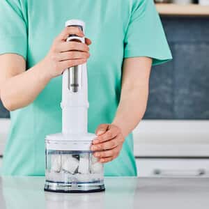 ブレンダーからチョッパー、泡立て器へスムーズに交換可能。 ボタン1つで段取りよく、次の工程へ。