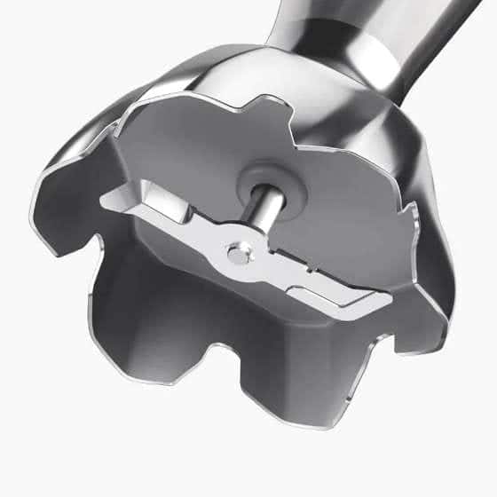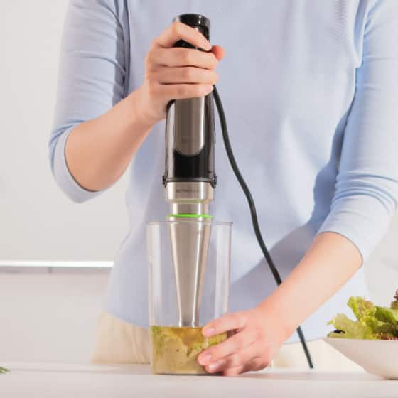 手の動きに、刃が応える。世界初、シャフトがしなやかに上下するアクティブブレードテクノロジー搭載 。撹拌範囲が約2.5倍*に広がり、食材を逃さずしっかりキャッチ。食感も風味も、仕上がりに妥協しません。