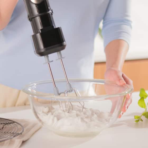 「泡立て」も「かき混ぜ」も、マルチウィスクビーターなら思い通りの仕上がりに。 軽やかに仕上げるケーキ生地や少し重ためのクッキー生地、さらにホイップクリームまで、あらゆるお菓子づくりも思いのまま。ブラウン独自のマルチウィスクビーターなら、ホイップクリームは約35%速く*仕上がります。
