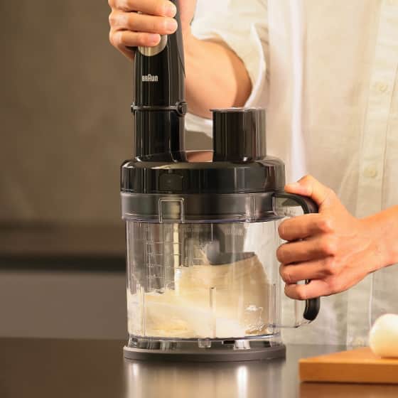 ブラウン史上最大級の500Wハイパワーモーターで、硬い食材も一気に撹拌。 上下にしなる「アクティブブレード」や、握る力で直感操作できる「スマートスピード」など、料理の質を高める独自機能を惜しみなく搭載。 業界最多*アタッチメントの1台14役を誇る、ブラウンのフラッグシップモデル。 プロのこだわりに応える“道具”が、あなたの創造の可能性をさらに引き上げます。