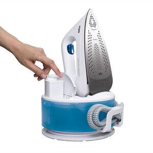 With its unique combination of DoubleSteam technology and the world’s first FreeGlide 3D technology,it delivers top ironing results in half the time. And its innovative vertical design takes up 50% less space.(*Saves 50% time (internal laboratory test,compared to Braun TS 5 steam iron) and saves 50% space (compared to Braun IS 7144 steam generator iron)).