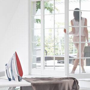 Experience greater comfort while ironing due to the ergonomically designed open handle:for more freedom of movement. The soft grip handle ensures a secure and steady grip while ironing.