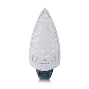 With Braun’s unique Textile protector,even delicate fabrics can be ironed at temperature settings with all the steam functions your iron offers. At the same time,it protects delicate fabrics from heat damage and shiny patches so that most fabrics can be ironed without an intermediate cloth. The Textile protector simply clicks onto the soleplate immediately lowering its temperature to a safe yet effective level,for optimal results on all kind of fabrics.