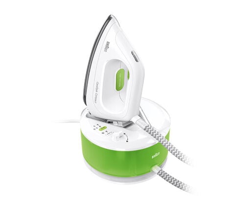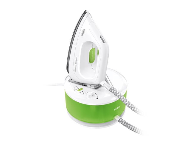 With its unique combination of DoubleSteam technology and the world’s first FreeGlide 3D technology, it delivers top ironing results in half the time. And its innovative vertical design takes up 50% less space.(*Saves 50% time (internal laboratory test, compared to Braun TS 5 steam iron) and saves 50% space (compared to Braun IS 7144 steam generator iron)).