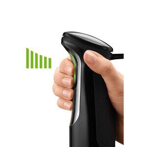 The MultiQuick 7 hand blender MQ 725 Omelette has a smart speed technology - the more you squeeze, the more power you get. Gently press the speed regulator to accelerate the hand blender, release to slow it down. One squeeze, all speeds.