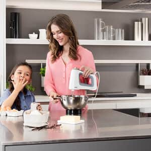 Optimized ergonomics with soft-touch rubber surfaces at the top handle and inside grip for a better grip and more control in every mixing situation.