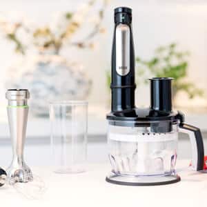The new Braun MultiQuick 7 hand blender is designed to help you make healthy meals for your family and friends – fast and easy. It now features world’s first ActiveBlade technology. This innovative flexible shaft gives you 250 % more active cutting surface to work with* – a clever kitchen helper so you can get the job done easily. It also features Braun’s new Easy SmartSpeed technology, which puts you in control with just one touch. Simply apply pressure on the control button to adjust the power intuitively and without interruption.