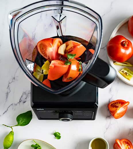 Nasze technologiczne rozwiązania pomagają Ci w pełni wykorzystać urządzenia Braun, aby ze wszystkich posiadanych produktów, np. niedoskonałych owoców i warzyw – w myśl zasad zero waste – przygotować pożywne posiłki.