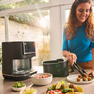 Ciesz się zdrowymi przepisami. Dzięki naszej technologii RealAir możesz uzyskać pyszny smak,który kochasz,używając niewielkiej ilości oleju lub w ogóle go nie używając. *W porównaniu do ziemniaków smażonych w tradycyjnej frytkownicy.
