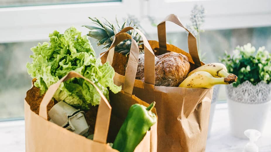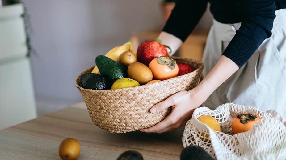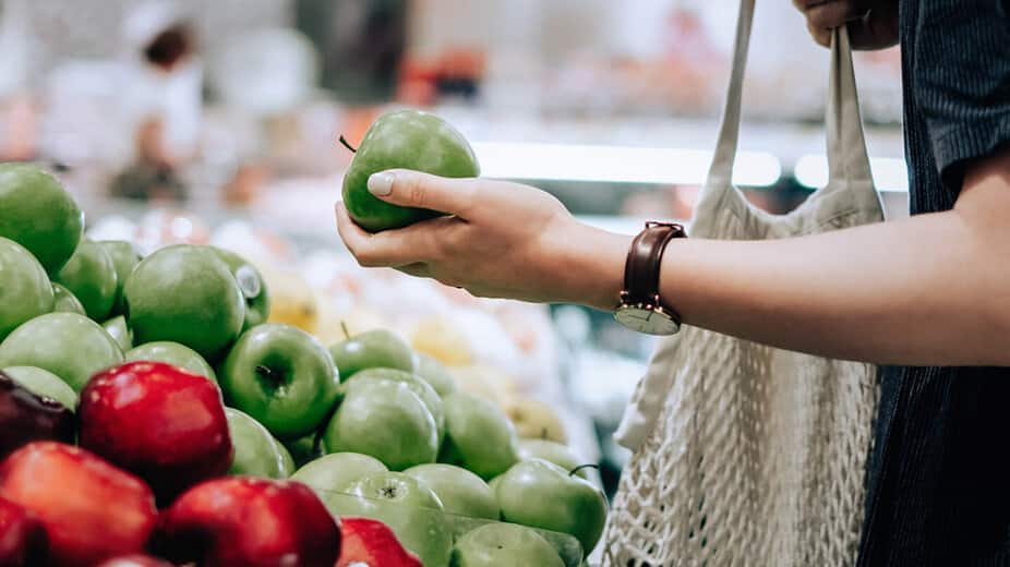 Opte por comprar produtos frescos, de preferência biológicos ou com selo ou rótulo ambiental. Os alimentos produzidos em massa contêm muitos aditivos e, muitas vezes, é difícil identificar a origem dos seus ingredientes. Se possível, compre frutas e legumes a granel, pois assim evita o desperdício e compra exatamente a quantidade de que precisa. Os mercados locais são, geralmente, uma boa opção para isso. Ao fazer compras, evite usar sacos de plástico e, em vez disso, leve os seus próprios sacos de compras, sacos de juta, redes reutilizáveis para frutas e legumes e caixas reutilizáveis.