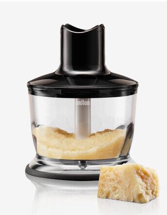Braun's 500ml chopper is tested to chop/grate up to 500 kg of Parmesan.
